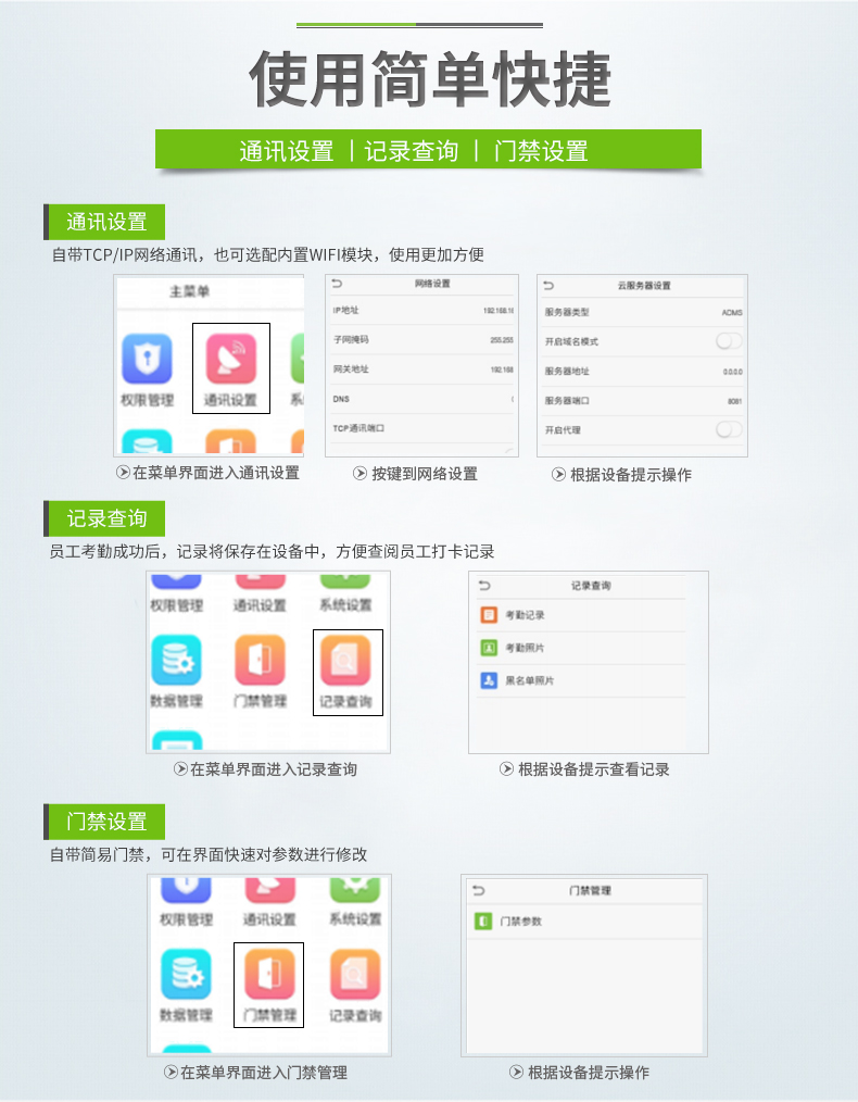 基礎(chǔ)功能 記錄查詢、Photo ID、門磁、報警、出門開關(guān)